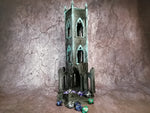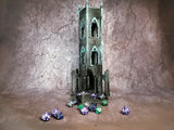 This beautiful Warhammer 40,000 terrain piece is a ruin of an ancient gothic cathedral tower the doubles as a chess dice tower.
